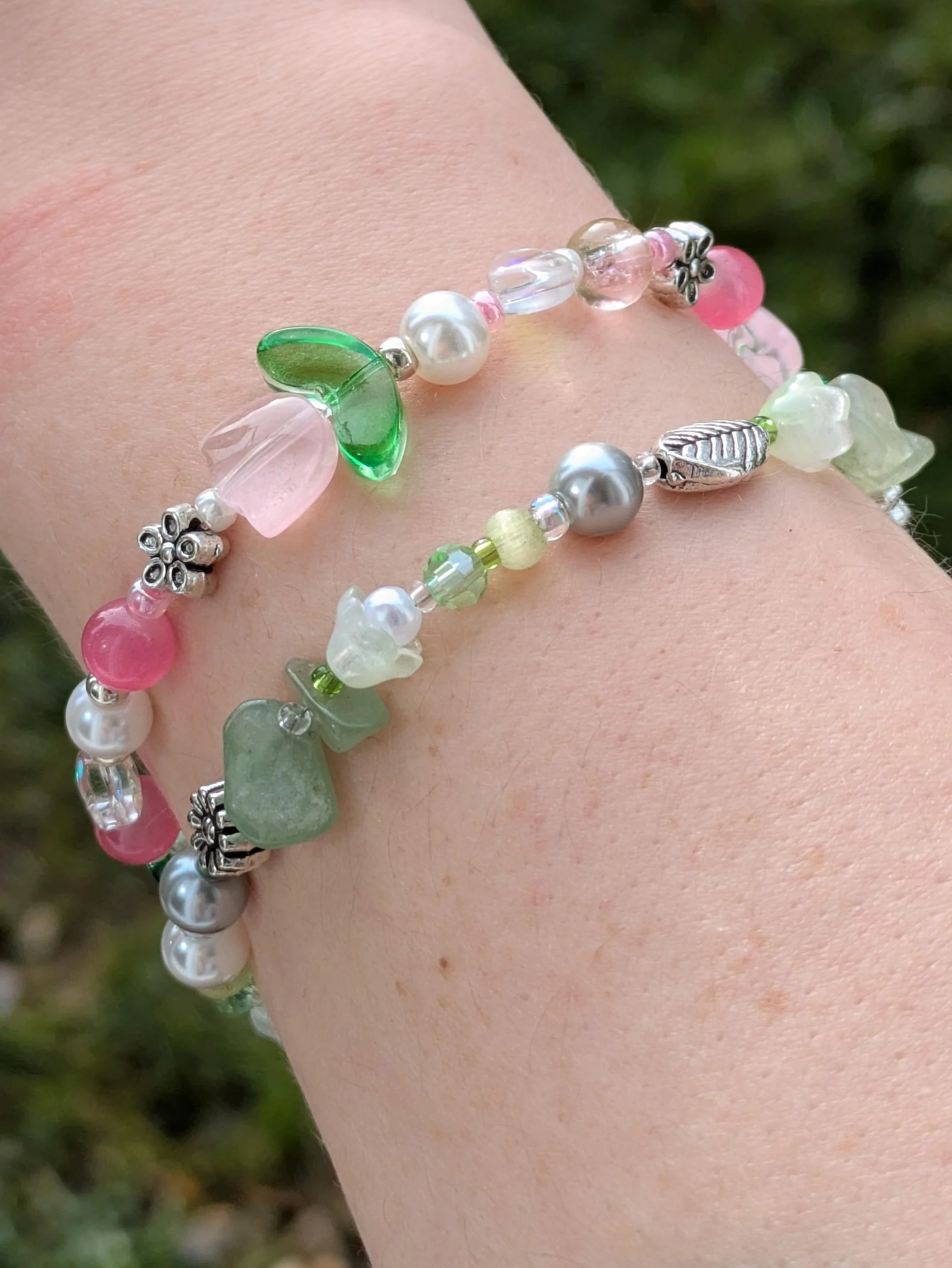 Personalized Beaded Bracelet – Pink, Green, or Tulip Designs (Stretch or Clasp)